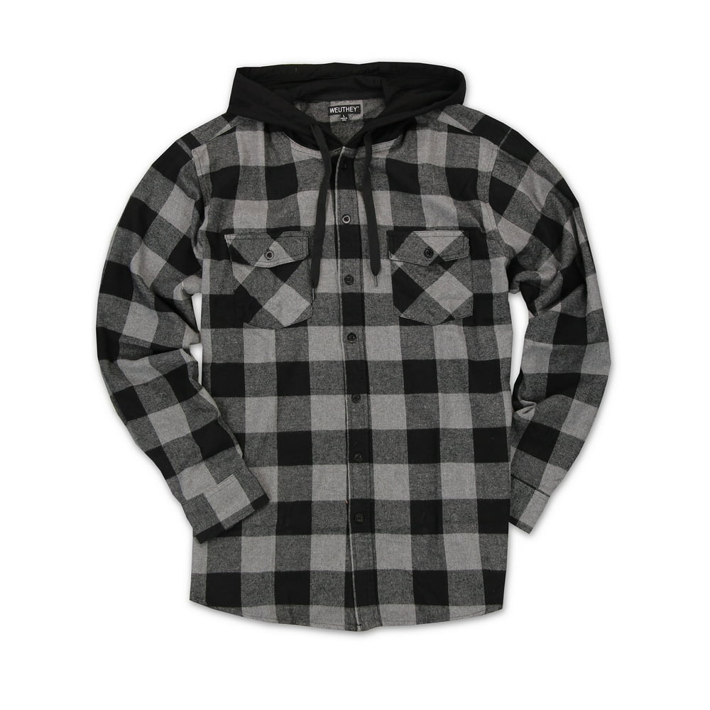 WEUTHEY Men s Buffalo Plaid Hooded Flannel Shirt Black Sumber : www.walmart.com